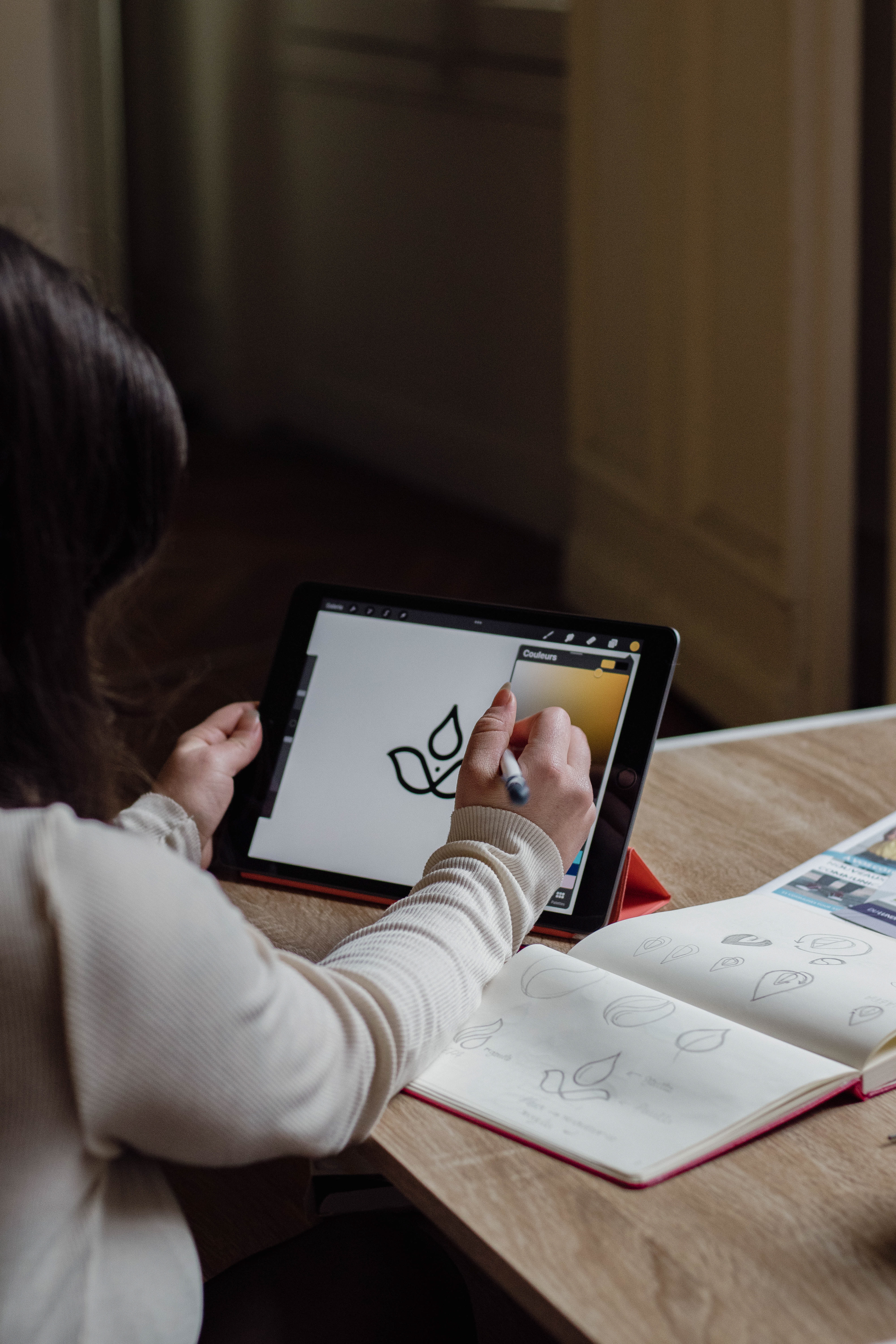 Snippets of Camille Cormont, graphic designer, working from home.